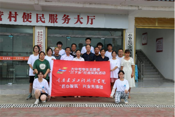 重庆建筑工程职业学院智能建造学院“匠心智筑”兴业先锋团(以下简称“兴业先锋团”)参加了以“喜迎二十大 永远跟党走 奋进新征程”为主题的2022年重庆市大中专学生志愿者暑期文化科技卫生“三下乡”社会实践活动。