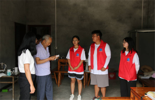 习近平总书记说过:“小康不小康,关键看老乡,关键在贫困的老乡能不能脱贫”,承诺“决不能落下一个贫困地区、一个贫困群众”。兴业先锋团走访慰问了村里2户群众,其中一位是双目失明、独居多年的老婆婆,一位是身患癌症的脱贫户,实践团成员仔细询问了他们的身体状况、交通出行、家庭收入、生活困难等事项,他们为实践团深情地讲述了他们在党和国家的关怀下,通过国家政策的帮助,让他们从穷困潦倒的贫困户变成了脱贫攻坚的圆梦人。最后,实践团成员为他们送上了大米、食用油、牛奶、面等慰问品,用真情传递温暖。