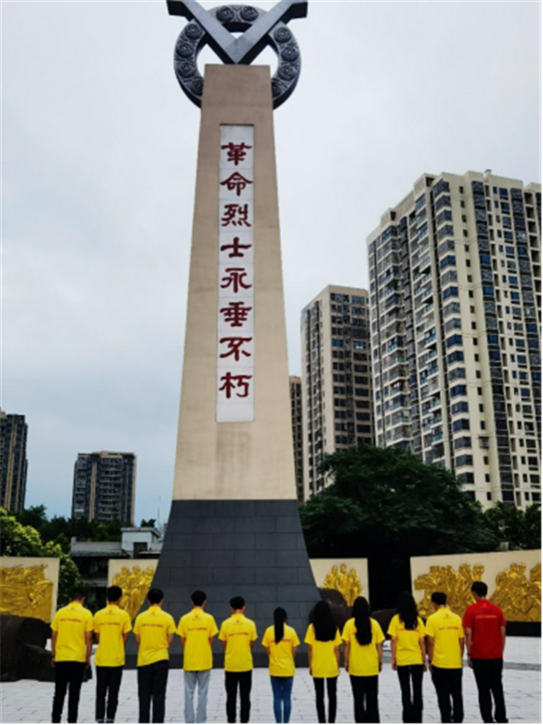 先烈回眸应笑慰,擎旗自有后来人。18日下午,团队一行来到桂山公园烈士纪念碑缅怀革命先烈。实践团成员们首先瞻仰了革命英雄纪念碑,并在英烈墙前集体默哀,悼念烈士英灵,向英烈们表达最崇高的敬意和无限的哀思。在烈士纪念碑前,团队成员们右手握拳,重温入团誓词,表达自己继承革命遗志、为共产主义事业奋斗终身的决心,响亮的誓词回荡在苍松翠柏之间!