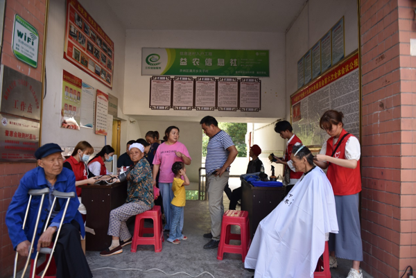 民有所需,我有所应。实践团发挥专业所学,护理专业成员为老人量血压、测血糖,宣传卫生健康知识,守护乡村振兴“健康线”;美发专业成员为乡亲们进行爱心义剪,共计服务70余人次。恰逢满月镇举办第五届“天上满月·消夏音乐汇”,根据主办单位需要,团队所有成员化身“守门员” “引路人”为本次音乐节提供疫情防控、现场引导、秩序维护、场地布置、后勤服务等志愿服务。本次志愿服务活动受到乡亲们和主办方的高度好评,并取得了良好的效果。实践团成员们真切地感受到了人民群众对生活的幸福感与获得感,同时也从实践中学到了解决和处理问题的方法。