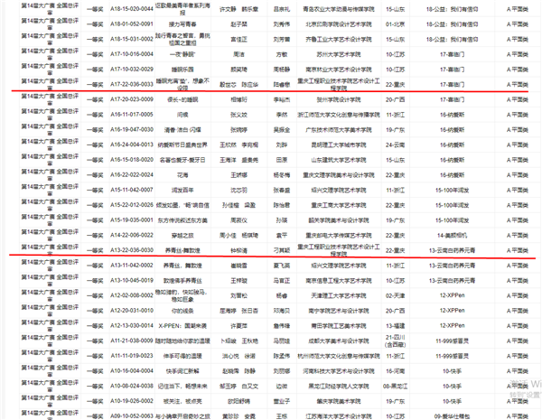 9月6日,第14届全国大学生广告艺术大赛(以下简称大广赛)全国总评审获奖名单公布,重庆工程职业技术学院学子多个作品脱颖而出,获得国赛一等奖2个,二等奖3个,三等奖1个,优秀奖13个。这是重庆工程职业技术学院首次在大广赛国赛中获得一等奖,且获奖数量创历届之最、获一等奖数量为重庆赛区参赛本专科院校之最,取得了历史性突破。