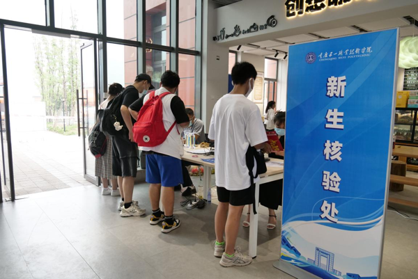 迎新期间,学校严格执行各项疫情防控措施,并且提前部署,要求进校前每日健康自查打卡,实行“到校即检、应检尽检”。报到时,学生须全程正确佩戴口罩,按志愿者引导,通过行李消杀、查验三码(渝康码、行程码、场所码)、核酸检测、测验体温等无异常后进入学校。