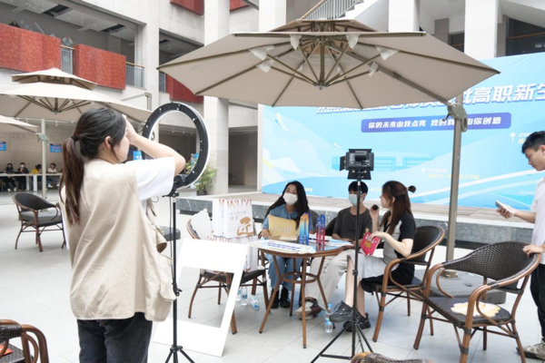 受疫情影响,新生家长无法陪同入校。为了缓解家长的焦虑,让他们更了解学校,知悉新生报到情况。当日,学校特在迎新现场组织了一场线上直播,不仅介绍了新生报到注意事项、学校概况、就业方向等基本情况,还通过直播间送出了极具特色的雨伞、抱枕等创客空间产品。
