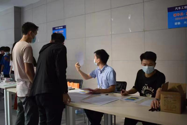 有的新同学刚到学校,第一时间就投入到志愿服务活动中去,在校门口、在教学楼前、在迎新报到点,处处都有他们的身影,协助每一名新生搬运行李、材料核验、报到缴费,并安排新生入住、引导新生有序排队进行核酸检测,志愿者们全流程贴心式的服务受到了新生的高度评价。