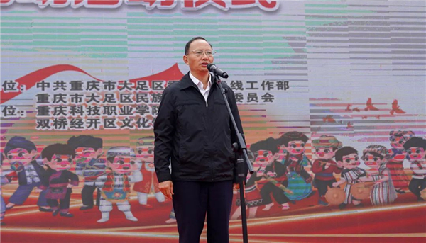 邓泄瑶在致辞时表示,近年来,重庆科技职业学院深入贯彻落实习近平总书记关于民族工作的重要论述和中央民族工作会议精神,以思想育人为先导,培养民族学生家国情怀;以文化传承为载体,探索民族教育新路径;以服务育人为根本,构建服务民族学生新体系;真诚关心关爱民族学生健康成长,唱响了“民族团结一家亲·同心共筑中国梦”的民族大团结之歌,民族团结工作取得良好成效。下一步,重庆科技职业学院将继续把铸牢中华民族共同体意识渗入教育教学全过程,深入开展党的民族团结进步宣传教育,加强各民族师生交流交融,凝聚学院各民族师生的智慧和力量,为进一步促进学校和大足区经济社会发展、开创各民族共同繁荣发展新局面作出更大的贡献。