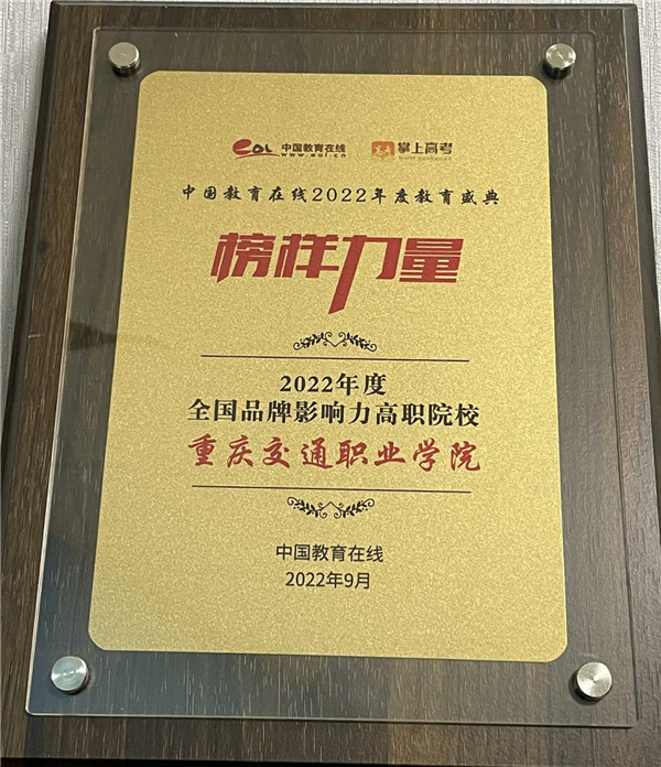 近日,必威体育登录网址 “榜样力量·2022年度教育盛典”评选获奖名单揭晓,重庆交通职业学院获“2022年度全国品牌影响力高校”荣誉称号。