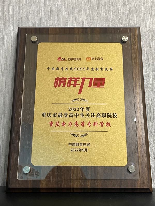 重庆电力高等专科学校获“2022年最受高中生关注高校”荣誉称号。