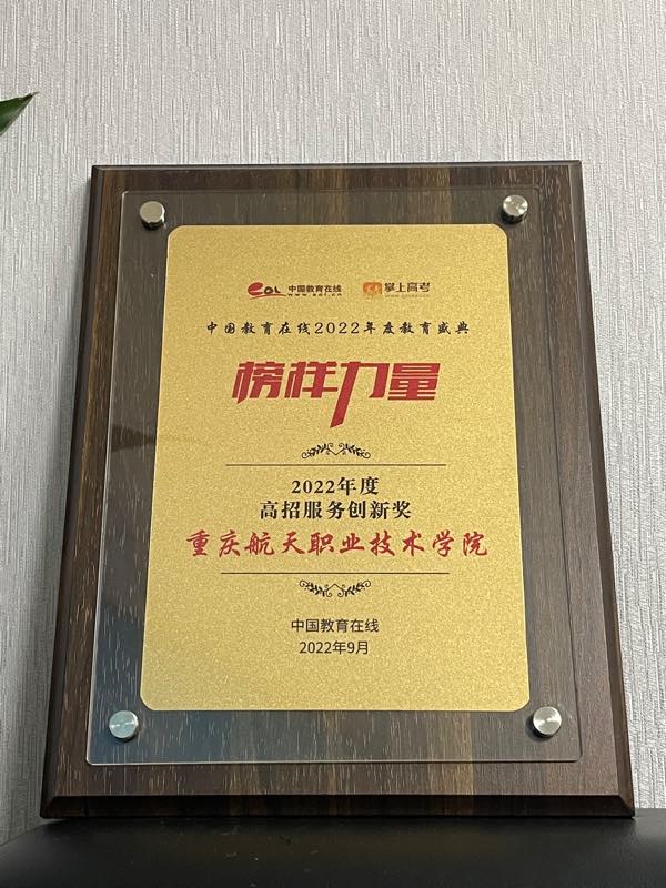 近日,必威体育登录网址 “榜样力量·2022年度教育盛典”评选获奖名单揭晓,重庆航天职业技术学院获“2022年度高招服务创新奖”荣誉称号。