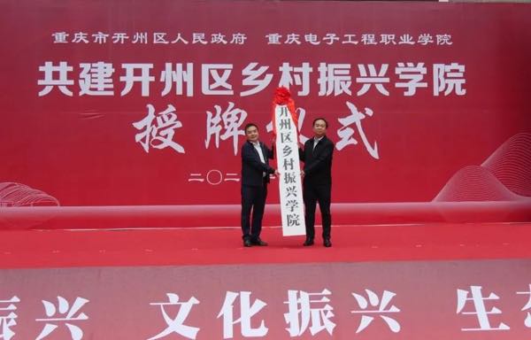 授牌仪式由重庆电子工程职业学院院长聂强为“开州区乡村振兴学院”授牌,开州区政府副区长李先凯接牌。