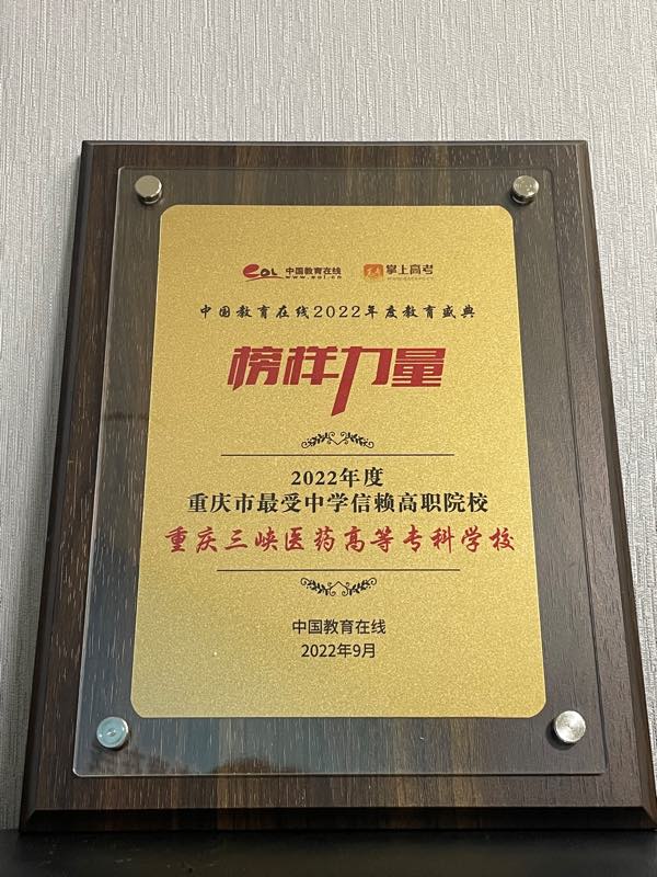 近日,必威体育登录网址 “榜样力量·2022年度教育盛典”评选获奖名单揭晓,重庆三峡医药高等专科学校获“2022年度最受中学信赖高校”荣誉称号。