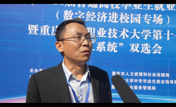 重庆市大学中专毕业生就业指导服务中心主任唐雪平,在双选会现场与企业代表和毕业生深入交流,详细了解企业人才需求和招聘情况,鼓励毕业生积极主动投递简历,为毕业生鼓劲助阵。重庆机电职业技术大学党委书记徐益、副校长张光彩等陪同。
