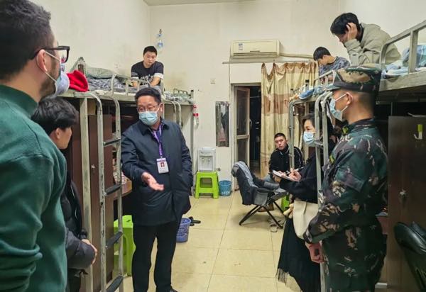 当前全市疫情防控形势极其严峻复杂,为落实上级疫情防控决策部署和属地要求,巩固前期疫情防控工作成果,严防死守,确保学校“不破防”。重庆交通职业学院按照“看好自己的门、管好自己的人、守好自己的阵地”的要求,校处(院)两级领导干部要带头下沉一线,蹲点包片,将学校21栋学生宿舍划分为21个网格,对校内学生寝室实行网格化管理。校党委书记(督导专员)张俊、副校长张文礼、杨志刚、罗宪,校长助理张毅等领导分别带队前往学生宿舍开展包栋工作,持续深入开展慰问关怀行动。