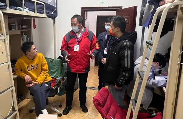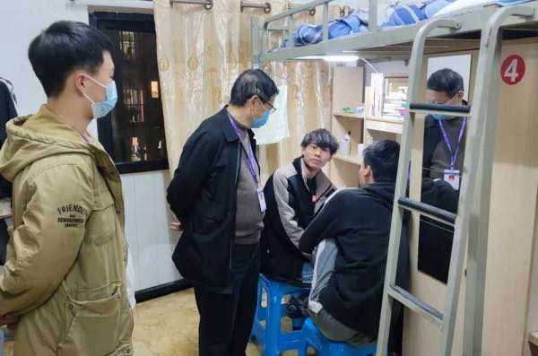 走访中,各工作组人员与同学们近距离交流,拉家常、聊学习、谈生活,详细了解同学们近期的身心状况,征求同学们意见建议,并提醒同学们要做好个人防护,保持宿舍卫生,加强体育锻炼,学习注意劳逸结合,并鼓励大家及时调整状态,做好合理规划,保持积极健康、乐观向上的生活态度。希望同学们认真遵守学校疫情防控规章制度、做好相关疫情防控保护措施,相信在全校师生的共同努力下,学校一定能够战胜这次疫情的冲击,让同学们尽快回归正常的学习生活状态。