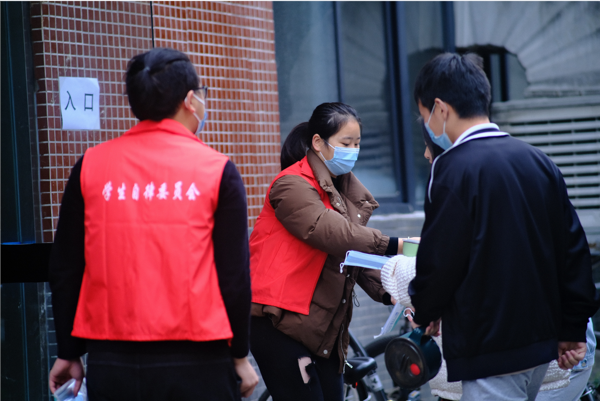 学校充分发挥党组织战斗堡垒和党员干部先锋模范作用,各级党组织和党员干部主动请战、主动出击,积极投身食堂就餐秩序维护、核酸检测、校园安全巡逻、防控物资搬运、心理辅导、就业指导等志愿服务中,党徽在群众身边熠熠闪耀、党旗在防控一线高高飘扬。校院两级领导带头下沉学生社区开展“分工包栋进楼入室”走访摸排工作,与学生“面对面”交流,深入了解学生学习、就业、就餐、洗澡、看病、就医等实际需求,及时解决学生急难愁盼问题,积极主动回应师生诉求,并及时整改落实到位。