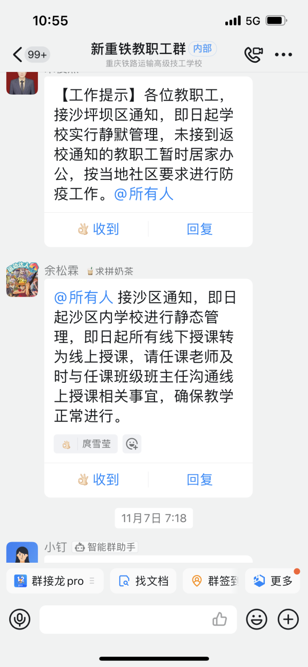 为坚决打好重庆11月新冠肺炎疫情歼灭战,进一步筑牢校园安全防线,重庆铁路运输技师学院师生闻令而动,冲锋在前,全力守护校园安全稳定!