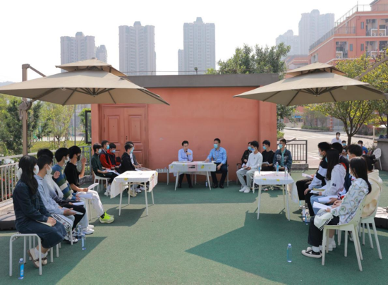 没有会议室,没有主席台,大家拿着板凳坐在一块儿,意见建议一起听,二十大精神一起聊。学校党员领导干部带头,定期组织学生代表,在宿舍门前、在校园户外、在活动场馆,搬出椅子,围成一圈,随时就搭成临时课堂,通过“零距离”座谈,既能够倾听学生心声,了解学生诉求,又对党的二十大精神开展宣讲,并围绕教学管理、后勤服务、学生管理等方面,与学生进行探讨交流,征集今后发展的“金点子”“好办法”,推动党的二十大精神落实落细。同学们都纷纷表示,这种宣讲形式,不但听得懂、坐得住、乐意听,还让大家对党的二十大精神有了更深的认识和领悟。