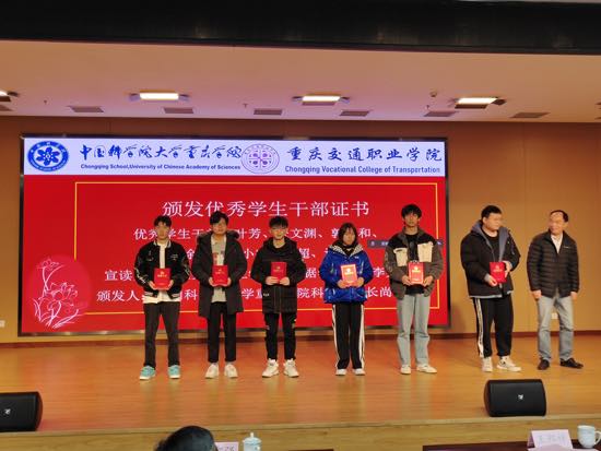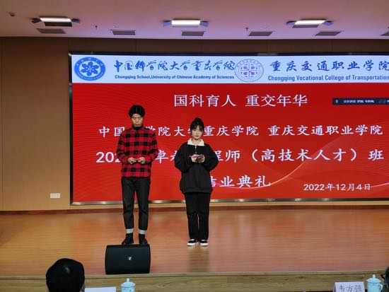 12月4日上午,中国科学院大学重庆学院(以下简称重庆学院)与重庆交通职业学院联合培养的卓越工程师(高技术人才)班结业典礼通过“线上+线下”的方式隆重举行。重庆学院党委书记韦方强,重庆交通职业学院副校长张文礼、副校长罗宪、校长助理张毅出席会议,重庆学院与重庆交通职业学院相关部门负责人、任课老师以及同学共计300余人参加会议。