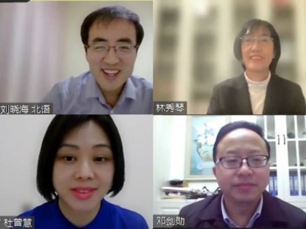 在互动答疑环节,邓剑勋教授结合Zoom评论区参会实时提问,从调查职业中文教育具体行业语言数据需求的重要性、“中文+职业技能”教师发展的研究价值、智慧服务如何转化为“中文+职业技能”教育应用、协调通用汉语和职业汉语的具体方法等方面进行了交流探讨。