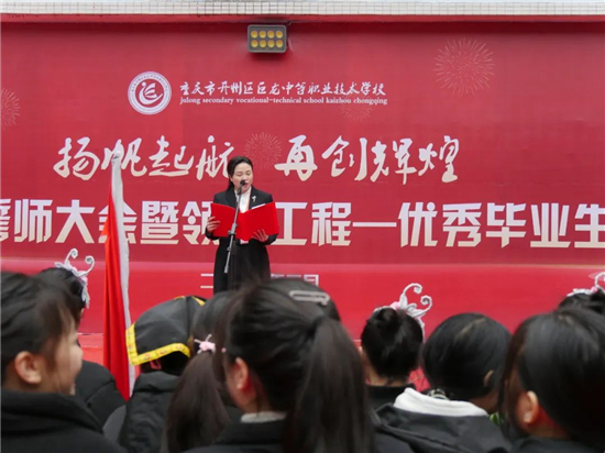 校长陈小红在讲话中说到廿六载的筚路蓝缕,一代代巨龙职中人精心传技、潜心育人,一个个巨龙学子孜孜不倦、勤奋好学,高考升学捷报频传,技能大赛硕果累累,英雄的巨龙儿女不断刷新着新记录,不断创造出新奇迹,知识改变命运的故事层出不穷,技能成就人生的事迹数不胜数。