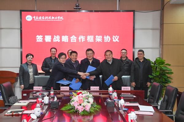 2023年2月21日,沙坪坝区经济和信息化委员会(以下简称沙坪坝区经信委)、重庆市节能技术服务中心(以下简称节能中心)、重庆化工建设工程质量监督站(以下简称化工站)和重庆建筑科技职业学院(以下简称重建院)在重建院签订战略合作协议,重点推进建设重庆市绿色节能低碳研究院。