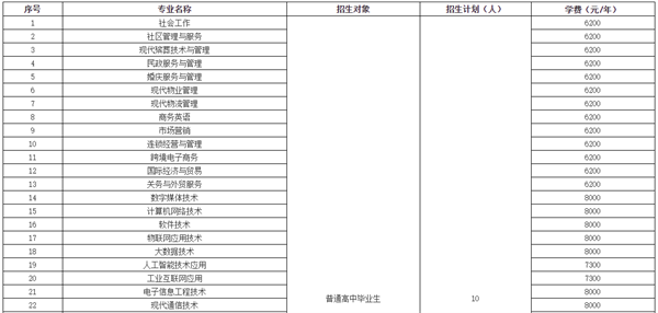 注:以上专业学制均为3年,学费、住宿费等各项收费标准以重庆市物价局批准的为准。