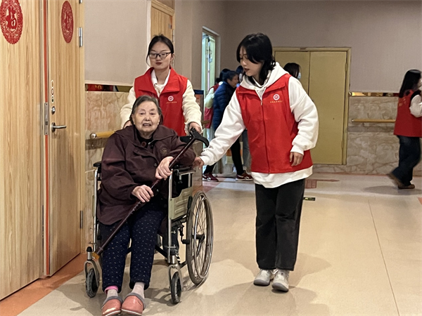接着,志愿者们来到老人的房间,叠衣服、铺床被、晒被子……推着轮椅陪伴老人到室外透透气,与老人聊天说话,分享生活中的趣事,爷爷奶奶们喜笑颜开,其乐融融。活动结束时,一位80多岁的老奶奶拉着志愿者的手,依依不舍地说:“你们要经常来,我们很喜欢你们经常来看看我们。”