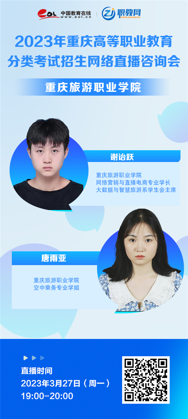 3月27日!重庆旅游职业学院2023年分类考试招生线上咨询会来了