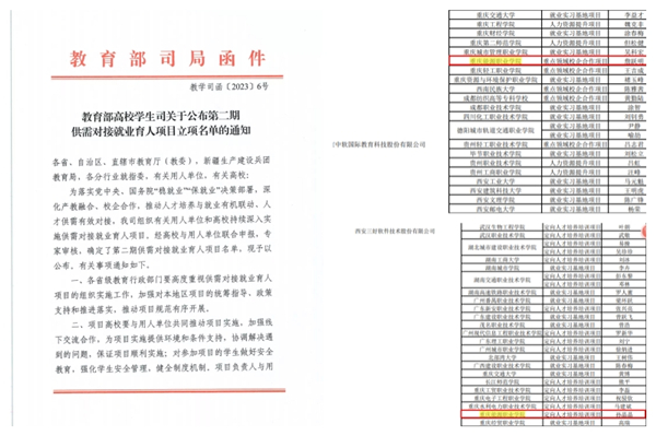 近日,教育部高校学生司公布第二期供需对接就业育人项目立项名单,重庆能源职业学院人工智能与大数据学院与中软国际教育科技集团合作申报《重庆能源职业学院大数据技术专业供需对接就业育人项目》、城市建设学院与西安三好软件技术股份有限公司合作申报《重庆能源职业学院定向人才培养培训项目》顺利通过审批,获准立项。