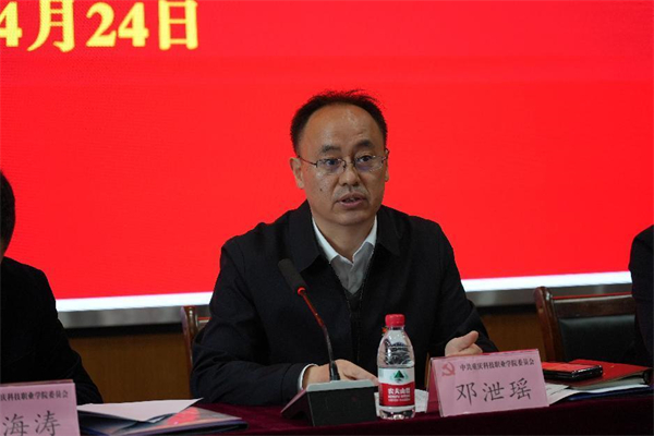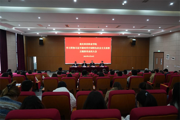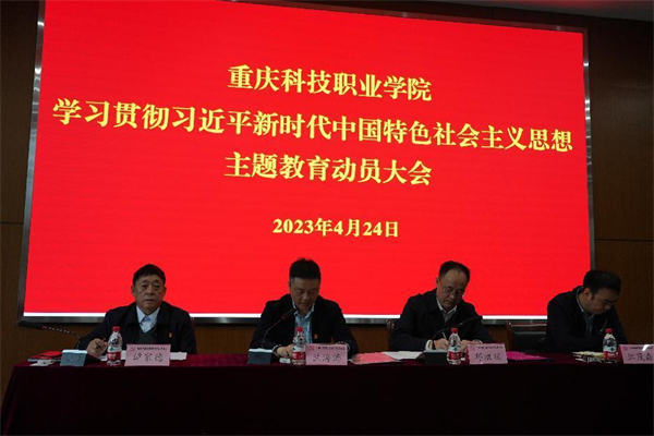 4月24日上午,重庆科技职业学院在学院科智楼学术报告厅召开学习贯彻习近平新时代中国特色社会主义思想主题教育动员大会。校党委书记、督导专员邓泄瑶作动员讲话。市委教育工委巡回指导四组组长兰海涛到会指导并讲话。校党委副书记、校长谭家德主持会议。