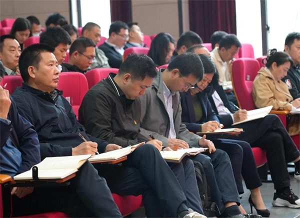市委教育工委巡回指导四组副组长江茂森、成员袁霄、蒋志强出席,全体校领导、中层干部、党支部书记、党员代表参会。