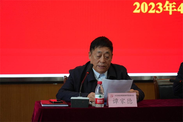 邓泄瑶作动员讲话时指出,在全党深入开展学习贯彻习近平新时代中国特色社会主义思想主题教育,是党的二十大提出的重要任务,是一件事关全局的大事,是把党的二十大擘画的宏伟蓝图变为现实的有力举措。就学院学习贯彻习近平总书记重要讲话精神、落实中央部署、开展好主题教育作了布置。强调:一是重点做到深刻把握主题教育的重大意义、深刻把握主题教育的总要求、深刻把握主题教育的目标任务、深刻把握主题教育的重点措施“四个深刻把握”,切实增强抓好主题教育的政治责任感和历史使命感,以高度的政治责任感扎实开展主题教育。二是要在强化政治铸魂上、在强化理论学习上、在强化调查研究上、在强化推动发展上、在强化践行宗旨上、在强化检视整改上六个方面下功夫,以务实的措施推动主题教育走深走实。三是要压实主体责任,强化督促指导,坚持统筹兼顾,营造良好氛围,严格按照中央、市委部署和市委教育工委工作安排,在市委教育工委主题教育巡回指导四组的精心指导下,切实加强组织领导,推动主题教育落地见效。