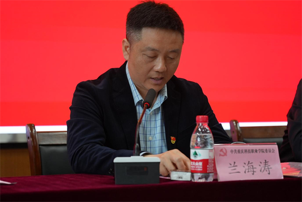 兰海涛在指导讲话中围绕学习贯彻习近平总书记重要讲话精神、市委决策部署和市委教育工委有关要求,结合巡回指导组工作职责,就学院落实主题教育各项任务,提出五点要求。一是提高政治站位推动落实。要认真学习、深刻领会、准确把握习近平总书记重要讲话精神,深刻认识开展主题教育的重大政治意义、理论意义和实践意义,切实把思想和行动统一到习近平总书记重要讲话精神和党中央决策部署上来。以高度的政治自觉、饱满的政治热情、严肃的政治态度,积极投身主题教育,确保取得实效。二是把握总要求推动落实。要全面把握、准确理解“学思想、强党性、重实践、建新功”总要求的战略指导性、现实针对性和鲜明实践性,将之贯穿主题教育全过程。要把落实总要求与全面贯彻党的教育方针,坚持社会主义办学方向,坚持立德树人,着力培养德智体美劳全面发展的社会主义建设者和接班人,与深入实施重庆市教育事业发展“十四五”规划和实现民办高校内涵发展紧密结合,切实履行为党育人、为国育才的职责使命。三是围绕根本任务推动落实。要把深入学习贯彻习近平新时代中国特色社会主义思想这一根本任务作为鲜明主线,一切工作安排、一切推进措施、一切工作要求,都要紧紧围绕这一主线来谋划、来展开。四是紧盯具体目标推动落实。主题教育时间紧、任务重、要求高。要坚持目标引领和问题导向相结合,以具体目标为牵引,以解决问题为抓手,有的放矢、精准发力,推动各项任务落实落地。五是贯通重点措施推动落实。要突出重点、抓住关键,统筹兼顾、整体推进,努力把每项工作都做扎实、做到位。他表示,巡回指导组将把深入学习贯彻习近平新时代中国特色社会主义思想作为开展指导工作的首要任务,紧密结合职业教育的特点,同重庆科技职业学院党委一道,采取多种方式,深入开展理论学习,推动广大党员、干部群众真学真懂真信真用,自觉做习近平新时代中国特色社会主义的坚定信仰者和忠实实践者,增强办好中国特色社会主义高校的政治自觉、思想自觉和行动自觉。将通过重点抽查、下沉调研、随机走访、座谈访谈等方式,了解掌握工作进展,及时跟踪问效。