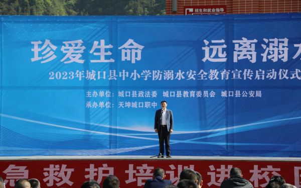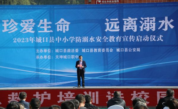 4月26日上午,2023城口县中小学防溺水安全宣传教育启动仪式暨防溺水安全教育宣传推进会在城口县职业教育中心举行。本次活动由城口县委政法委、城口县教育委员会、城口县公安局共同主办,城口县职业教育中心承办。副县长江成敏,县委政法委、县教委、县公安局、县水利局、各乡镇(街道)领导,各中小学及幼儿园负责人和部分学生家长代表参加了本次启动仪式。启动仪式由县委教育工委书记、县教委主任唐真兴主持。