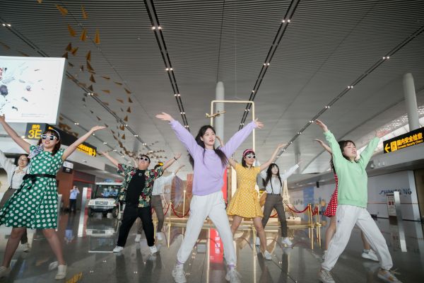随着欢快的音乐声响起,一场别开生面的机场快闪“闪亮登场”。16名航站区管理部青年团员活力起舞,代表80、90后时代的舞蹈串烧搭配上耳熟能详的经典曲目,顿时吸引了过往旅客纷纷驻足观看。