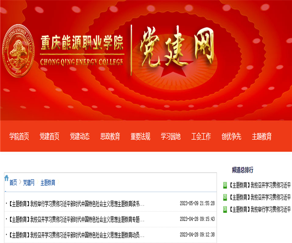 重庆能源职业学院学习贯彻习近平新时代中国特色社会主义思想主题教育动员部署会召开以来,学校党委、各直属党支部认真贯彻落实习党中央、市委及市委教育工委关于主题教育的各项部署,以高度的政治责任感和使命感,以学深悟透、实干笃行的精神,坚持问题导向、聚焦目标任务,推动主题教育扎实有效开展。按照主题教育计划安排,学校党委相继召开了主题教育专题学习会,通过党委理论学习中心组集中学习、主题教育读书班、校园深度“游学”、红色基地研学,牢牢把握“学思想、强党性、重实践、建新功”总要求,坚持高标准、严要求,有力有序做好各项工作,确保主题教育深入开展、取得实效。