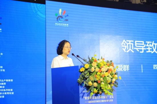 四川省农业农村厅科技教育处一级调研员邓爱群致辞发言,她指出在全面建设成渝地区双城经济圈中推进乡村振兴,人才是关键,产业是核心,教育是基础。职业教育具有服务乡村振兴的独特优势。近年来,四川农业职业教育稳步发展,特别是成都农业科技职业学院等一批涉农职业院校充分发挥人才和师资优势,积极推进产教融合,实现教育链、人才链、产业链、创新链有机衔接,进一步促进了职业院校学生高质量就业和产业高质量发展。同时,她表示在新的历史时期,川渝职业院校要发挥师资强、学科广、学生优、实践多的优势,高质量开展项目合作,在建设川渝现代高效特色农业带、推进特色农产品精深加工、强化农业科技支撑等方面为国家发展全局作出川渝教育更大贡献,不断提升教育服务乡村振兴的能力。