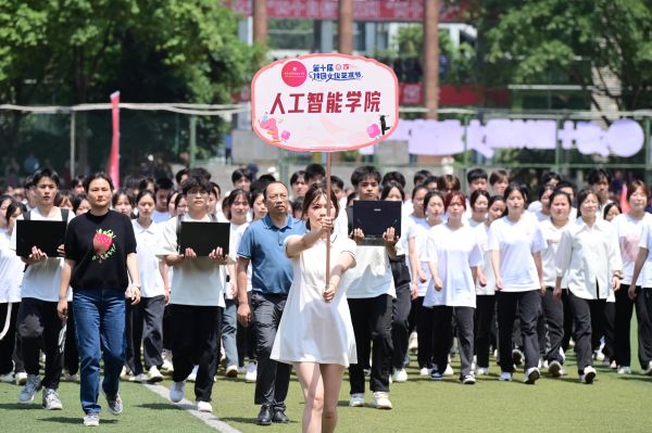 伴随着活力四射的开场音乐,7个二级学院近700名学生代表在学院书记院长的带领下依次入场。智能制造学院学子用街舞“点燃”现场,用“氢气球”放飞梦想;人工智能学院学子、财经学院学子、教育学院学子眼神坚毅、步伐铿锵、口号响亮;健康学院学子身着实训服、手拿专业书登场,带着“学问”走方阵;建筑工程学院方阵现场模拟工地施工现场作业;车辆工程学院方阵以摩托车“拉风”登场,紧接着展示了汽车制造与试验技术专业“走秀”;国际交流合作中心留学生身着艳丽的缅甸传统服装,十分亮眼……方阵入场式上,各学院精心筹备、充分展示,使出“十八般武艺”,秀出“硬核实力”,入场式现场变身“专业秀场”,透出浓浓学术味道。