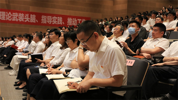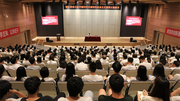 向晓春结合自身学习体会和调研成果,全面系统地阐述了习近平新时代中国特色社会主义思想的基本观点、科学体系,以及如何把握好这一思想的世界观、方法论,坚持好、运用好贯穿其中的立场观点方法,不断增进对党的创新理论的政治认同、思想认同、理论认同、情感认同,真正把马克思主义看家本领学到手,自觉用习近平新时代中国特色社会主义思想指导各项工作,以高质量党建引领推动学校事业高质量发展。