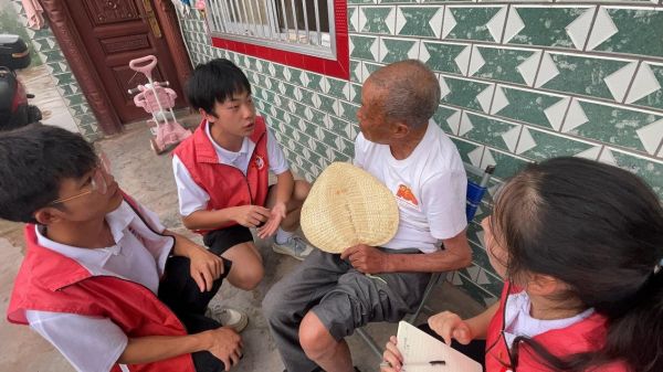 大坝村郑家湾的老党员谭太贵,今年已经96岁高龄了,他于1952年12月31日宣誓入党,目前已有近71年的党龄。谭太贵同志向实践团成员们讲述了他年轻时的抗战故事,以及自己对建党百年来我国发生翻天覆地变化的真切感受。他骄傲地对实践团成员说到:“大家不要看我年龄大,在党和政府的关心爱护下,在当地基层政府的支持帮助下,我身体硬朗得很。我要争取成为我国的百岁老人,亲眼见证祖国未来的发展变化。”团队成员赏柯蓝感慨道:“我们作为新时代的中国青年,要善于向老一辈党员学习,学习他们身上有理想、敢担当、能吃苦、肯奋斗的宝贵精神,成为实现中华民族伟大复兴的先锋力量。”