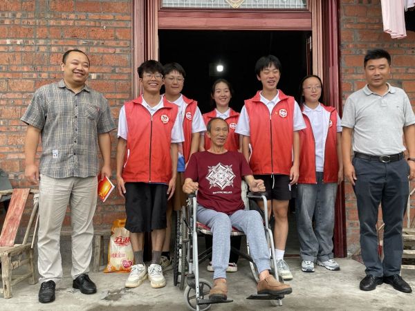 伴随着蒙蒙细雨,实践团成员又来到了大坝村脱贫户曾世明的家中,他由于身患腿疾,目前只能坐在轮椅上生活。当曾世明和家人见到当地村干部和实践团成员带着大米来家里慰问时,曾世明含泪感谢国家的脱贫攻坚政策,感谢当地政府的高效务实,表示当地村干部经常送来慰问品,已经记不清楚次数了。曾世明向团队成员感叹道:“虽然我目前只能依靠轮椅生活,但是大坝的脐橙发展引领带动着乡村振兴,目前我们村的发展就跟坐上了高铁一样。现在我们家有三百多株脐橙树,脐橙让我们家盖上了新房子,儿女也不用外出打工,我现在是儿孙满堂、膝下成欢,生活得很幸福。”