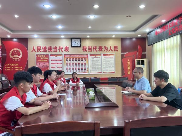 团队指导老师和合川区龙市镇民政社事办、团委工作人员在古城敬老院内交流志愿服务内容