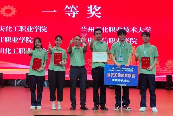 此次大赛是重庆工信职业学院代表队第一次代表重庆市参加全国职业院校技能大赛,比赛期间,学校领导柴彬堂莅临比赛现场为学生加油助威,在殷利明、巫宇岑、邹晶三位老师的指导及廖权昌教授的助力下,重庆工信职业学院22级药品生物技术专业学生杨顺娇、刘贵林、程毅三名同学在全国职业技能大赛化工生产技术赛项(高职组)比赛中,发挥出色,喜获全国团体一等奖,取得学校在全国职业院校技能大赛中的首金!