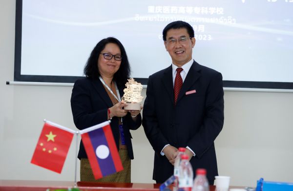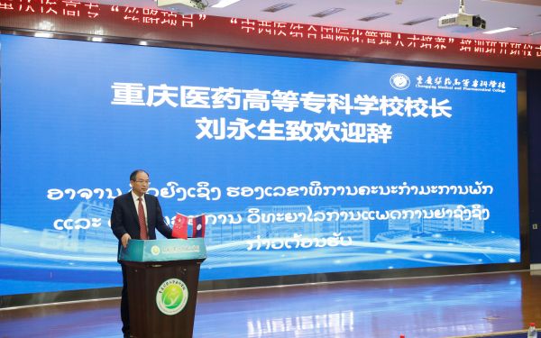 9月1日,重庆市人民政府外国留学生市长奖学金“丝路项目”:老挝中西医结合国际化管理人才培训班在重庆医药高等专科学校举办。老挝卫生部办公厅主任占塔农·玛尼提、市卫生健康委二级巡视员梅政成出席开班仪式并讲话。学校党委书记吴海峰向外宾赠礼。重庆医药高等专科学校校长刘永生致欢迎词。老挝卫生部医疗康复司司长坎赛·列勒赛、市教委国际处处长李斌、市卫生健康委国际合作处处长杨彬出席开班仪式。仪式由学校副校长何坪主持。