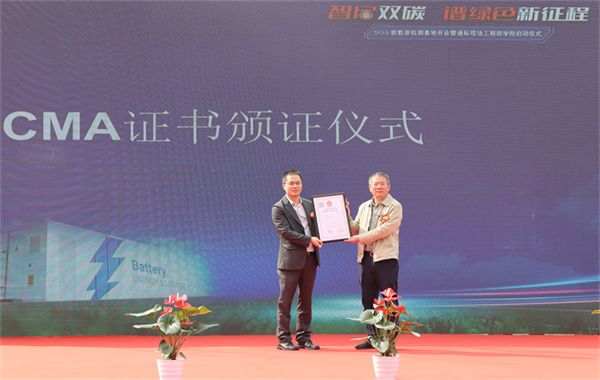 仪式上,市监局任监处处长胡亚非为SCS新能源检测基地颁发CMA证书,SGS通标公司与重庆能源职业学院就“通标现场工程师学院”项目进行签约。