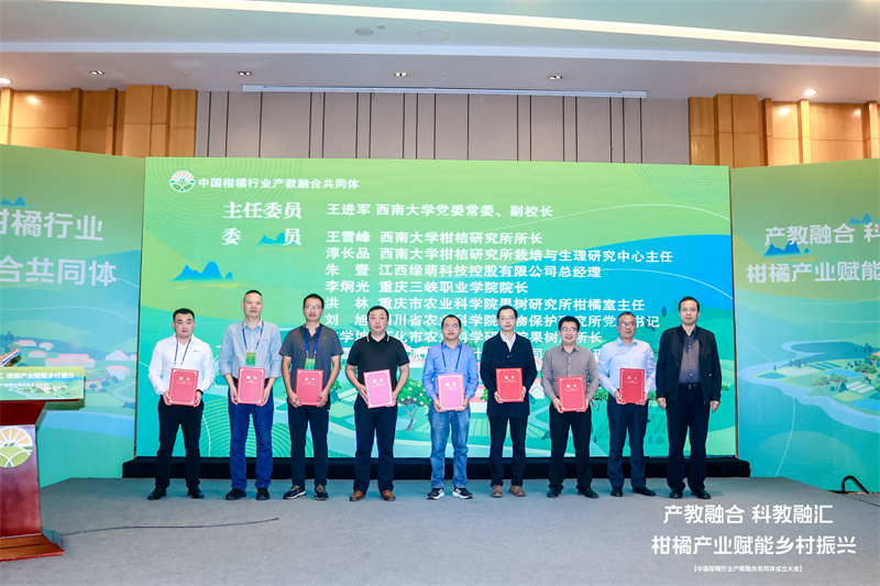 随后,大会举行了中国柑橘行业产教融合共同体成立仪式。与会领导向共同体成员单位授牌,并为共同体第一届专家委员会成员颁发聘书。