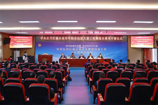 10月28日上午,中央在川在渝企业青年职业技能大赛工程测量员赛项开赛仪式在重庆交通职业学院陆通楼A6学术报告厅举行。中铁十一局集团第五工程有限公司副总工程师熊军、团委书记何钐,重庆交通大学裁判长徐金鸿,学校党委副书记(纪委书记)石加友、路桥与建筑学院院长罗天宇,全体参赛选手、裁判以及相关工作人员参加开赛仪式。开幕式由中铁十一局集团第五工程有限公司人力资源部部员何越主持。
