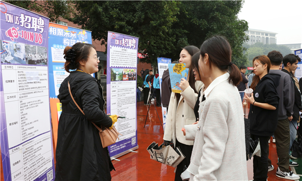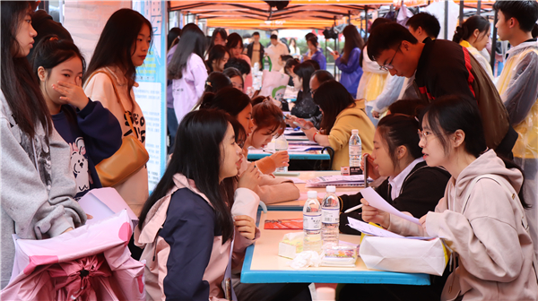 据统计,在“双选月”招聘活动中,该校各二级学院已举办78场专场招聘会和26场网络宣讲会,发布招聘公告150余条,提供岗位7100余个,加上本次双选会,总计提供岗位数16500余个,招聘岗位数与毕业生人数比例约3.68:1。