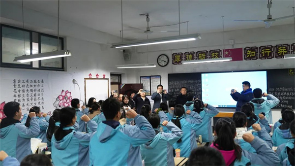 李淼浩一行观摩了学生早读、学生课间操、教师课堂教学,参观了实训室、校医室、学生宿舍、校史馆、职工之家,对重庆酉阳职业教育中心师生的精神面貌、校园氛围和所取得的成绩给予了积极评价。