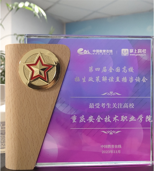 该活动经过前期征集、专家会审、综合评审等阶段,重庆安全技术职业学院从全国众多高校中脱颖而出,荣获第四届全国高校招生政策解读直播咨询会“最受考生关注高校”奖项。这充分体现了重庆安全技术职业学院在教育领域的卓越表现得到了社会的广泛认可和高度好和高度好评。