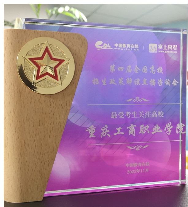 该活动经过前期征集、专家会审、综合评审等阶段,重庆工商职业学院从全国众多高校中脱颖而出,荣获第四届全国高校招生政策解读直播咨询会“最受考生关注高校”奖项。这充分体现了重庆工商职业学院在教育领域的卓越表现得到了社会的广泛认可和高度好评。